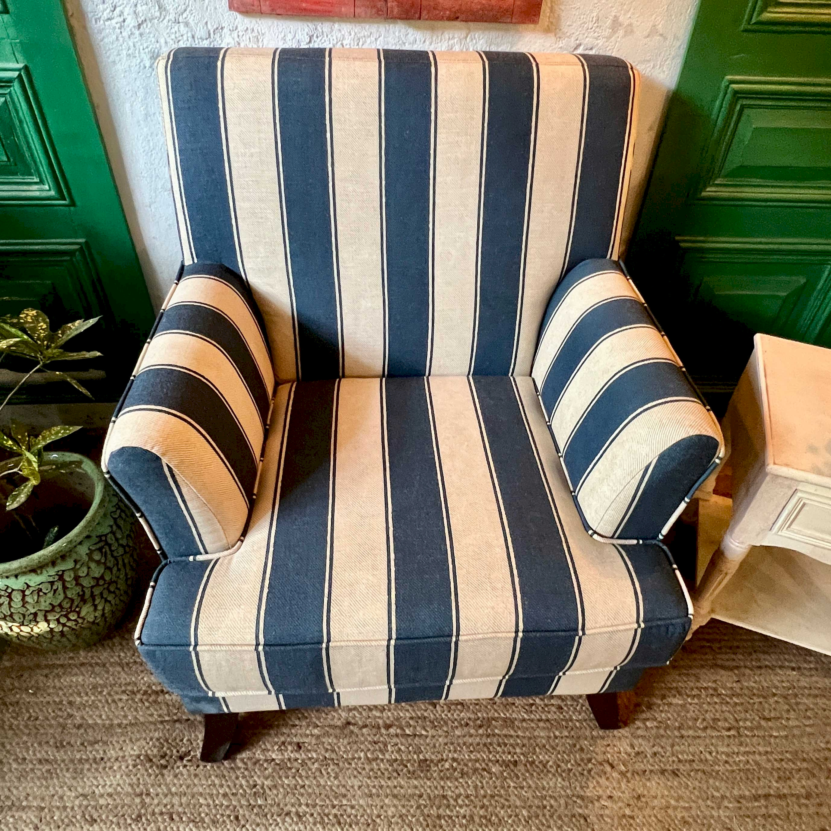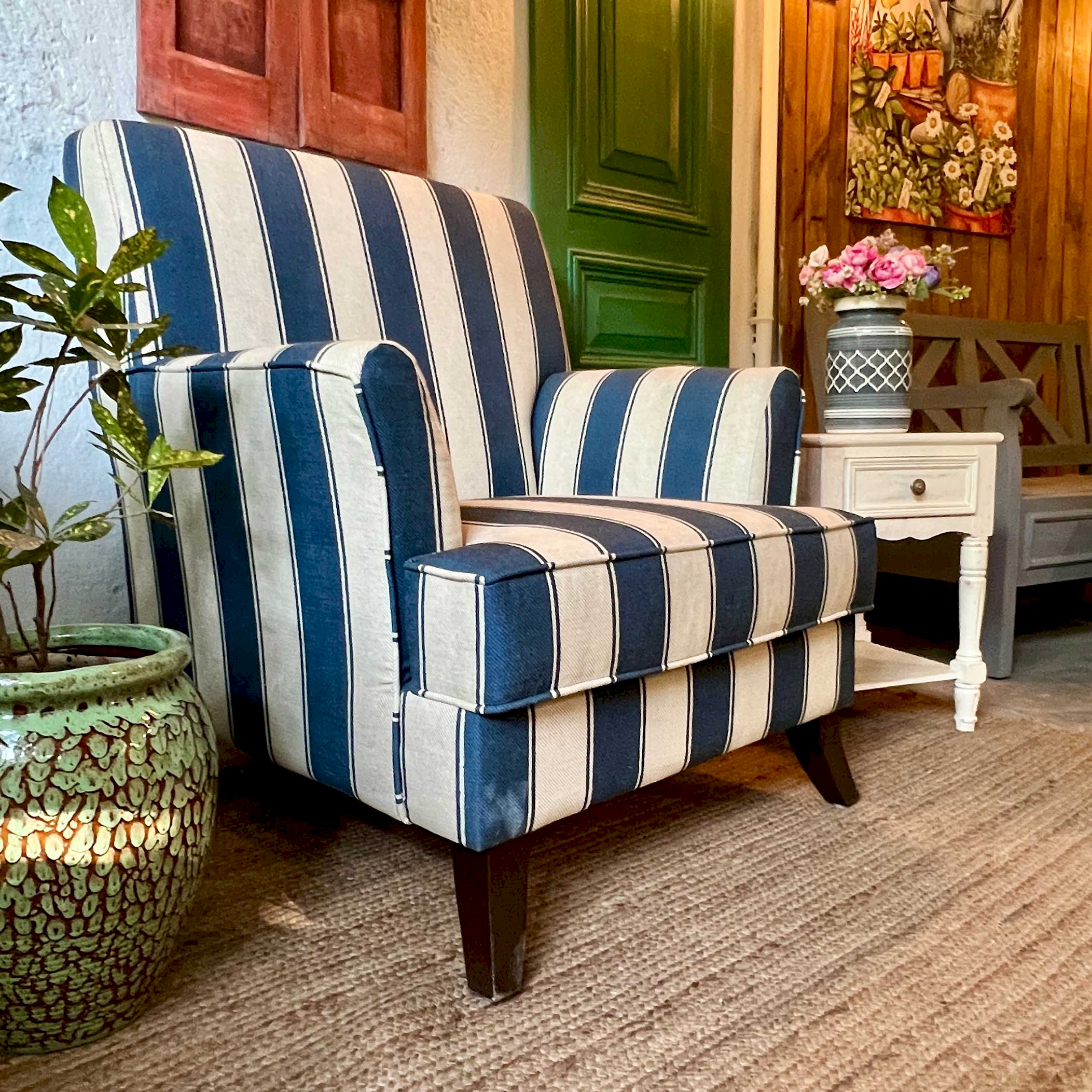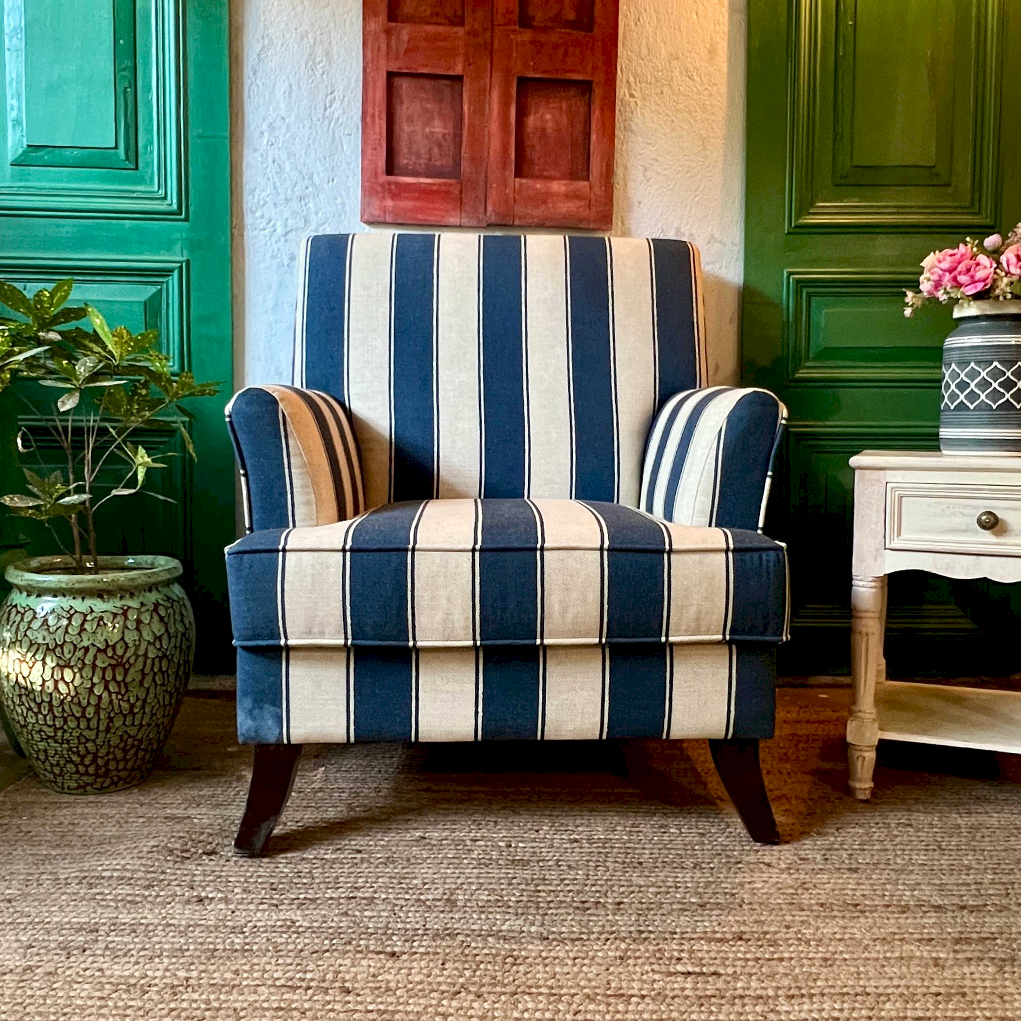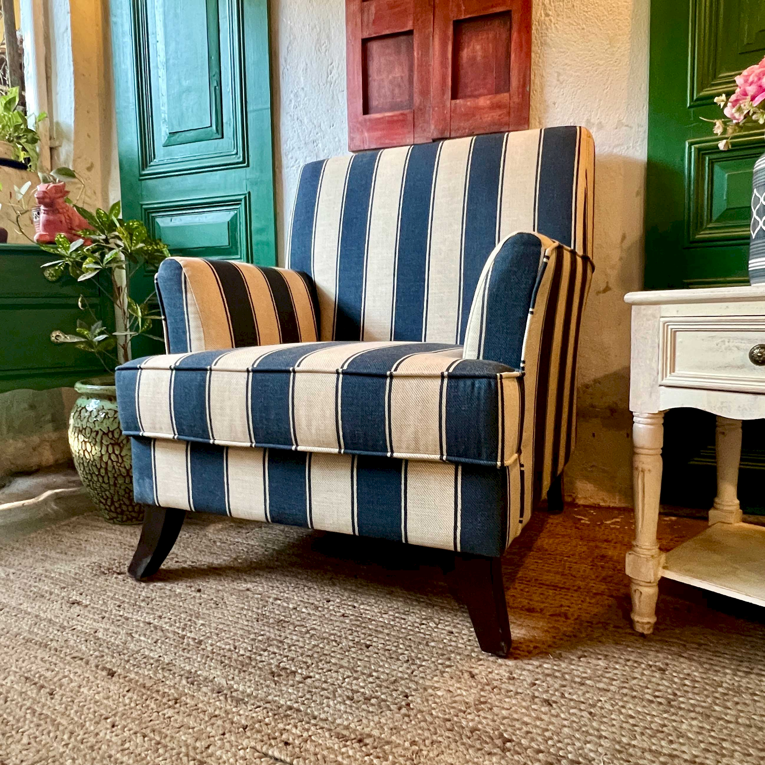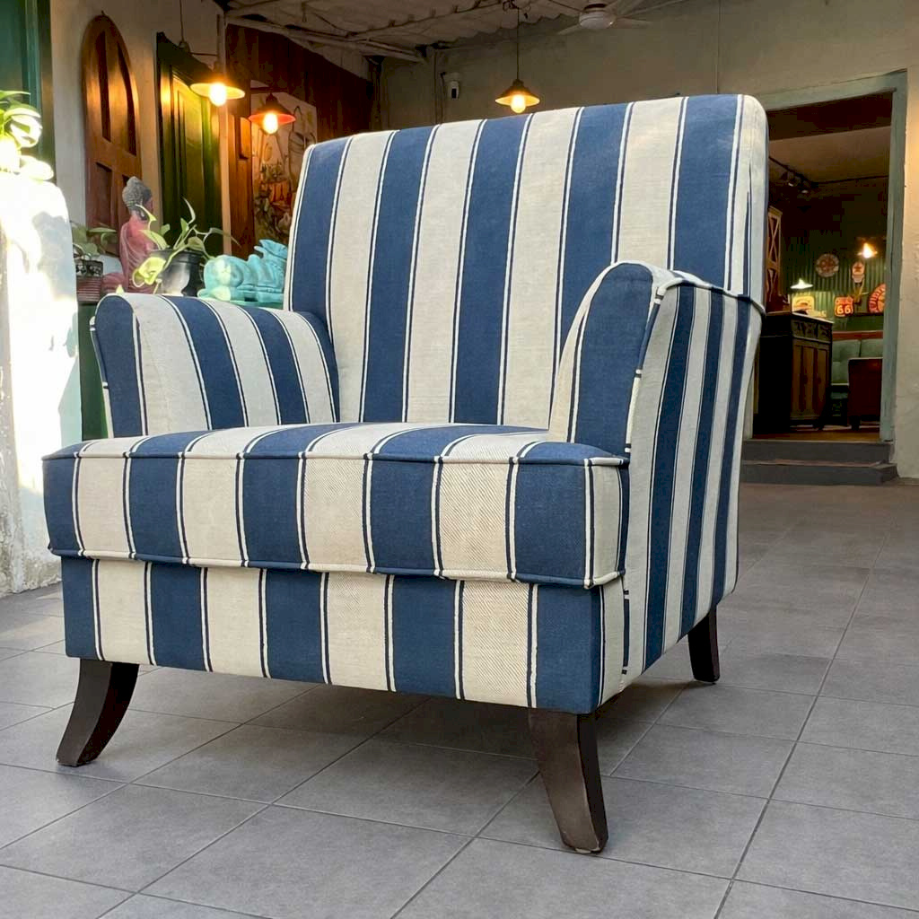 Lucia Blue stripe accent Chair