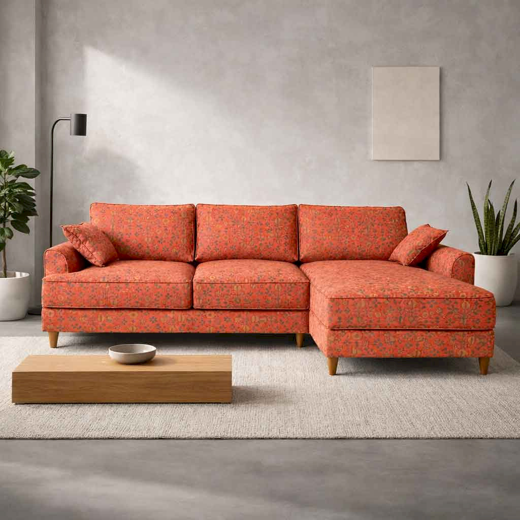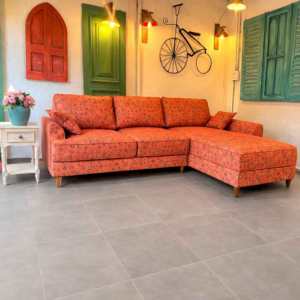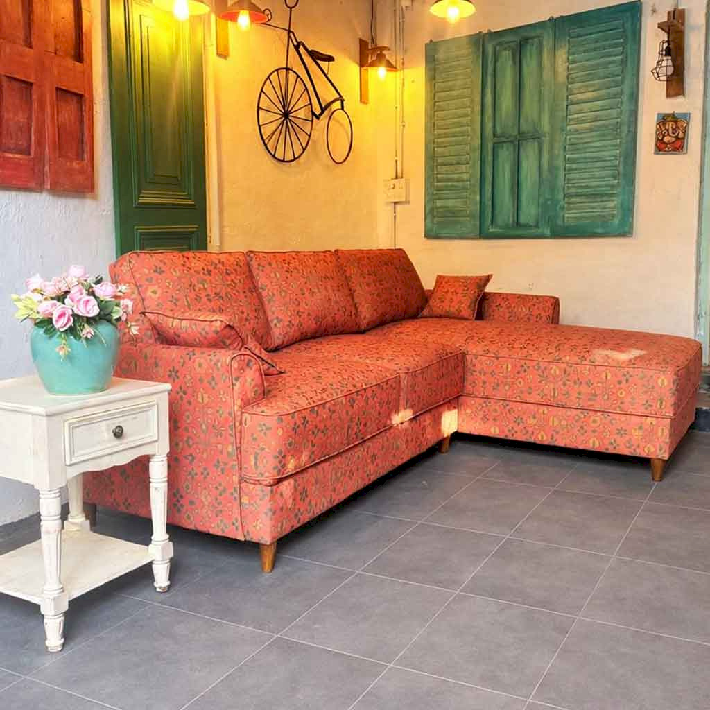 Tribal Rugs Printed Red L-shape sofa