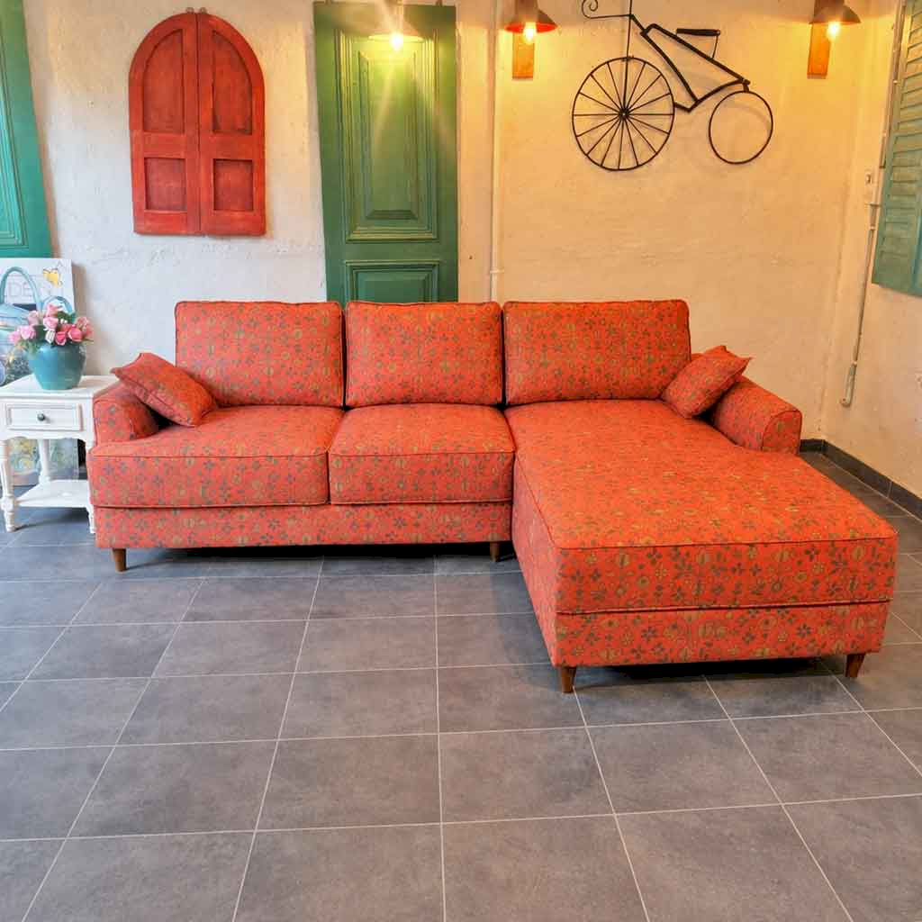 Tribal Rugs Printed Red L-shape sofa