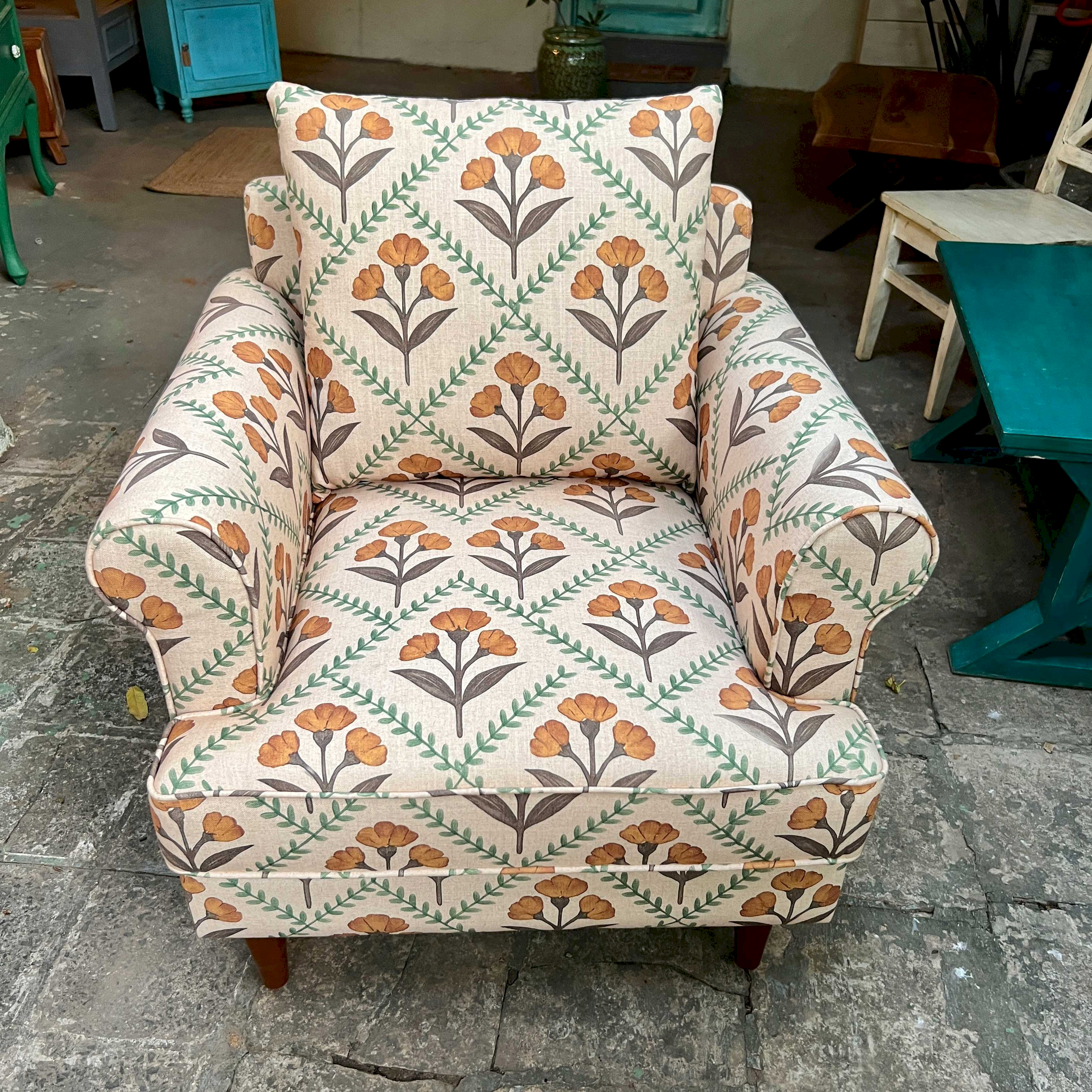 Tulip Bloom Linen Beige Printed Comfy Sofa